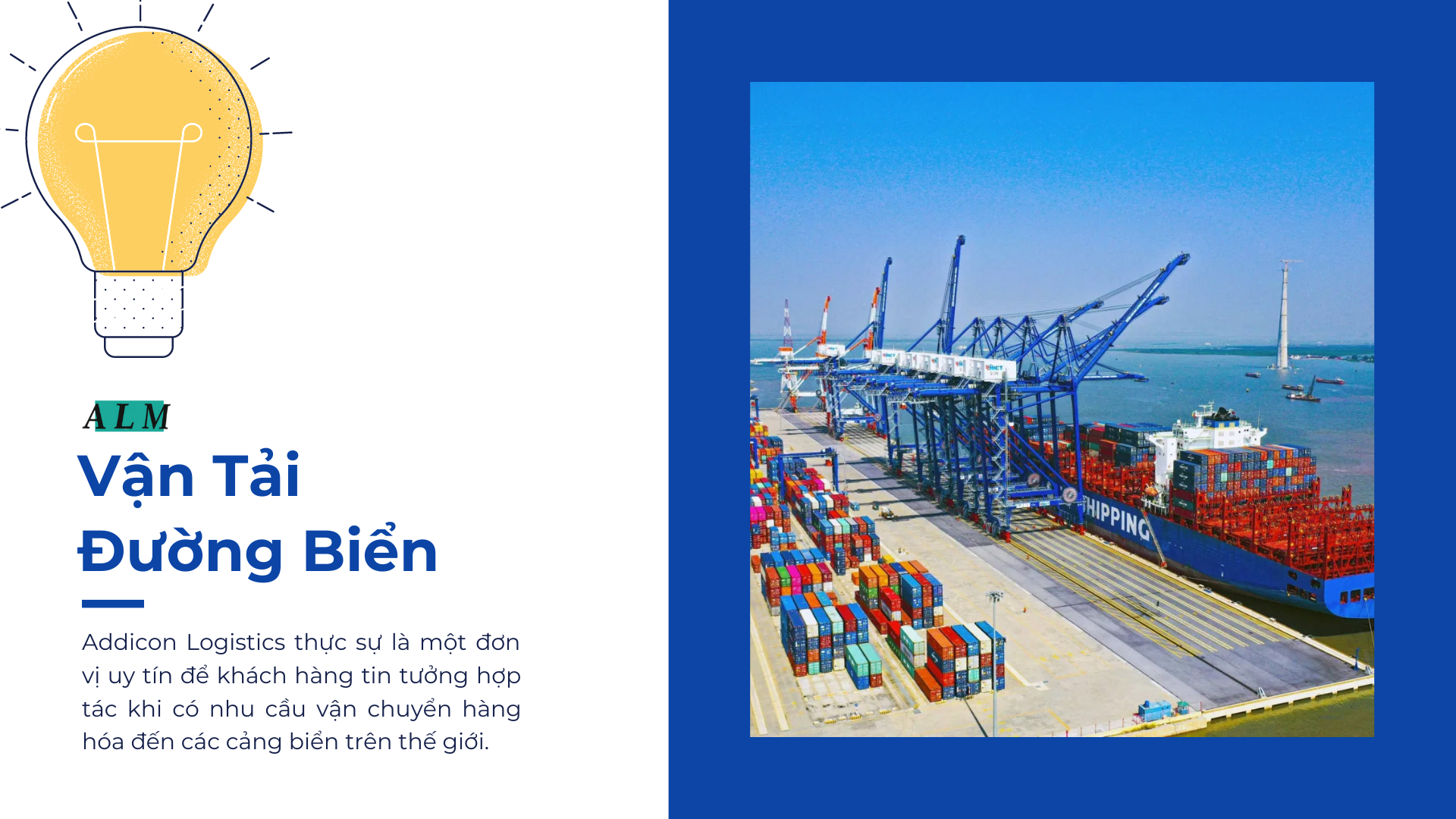 ALM cung cấp đa dạng các dịch vụ vận chuyển bằng đường biển như: